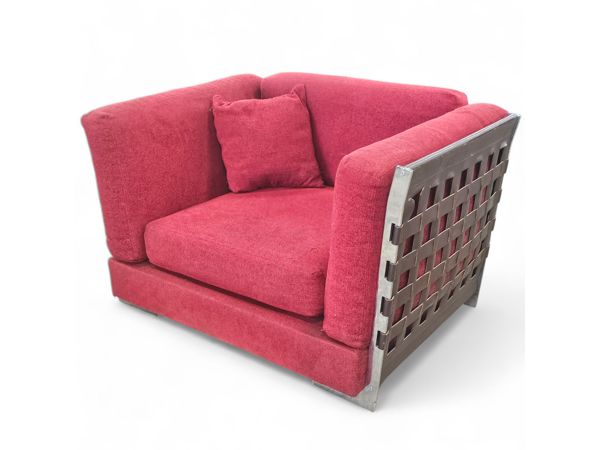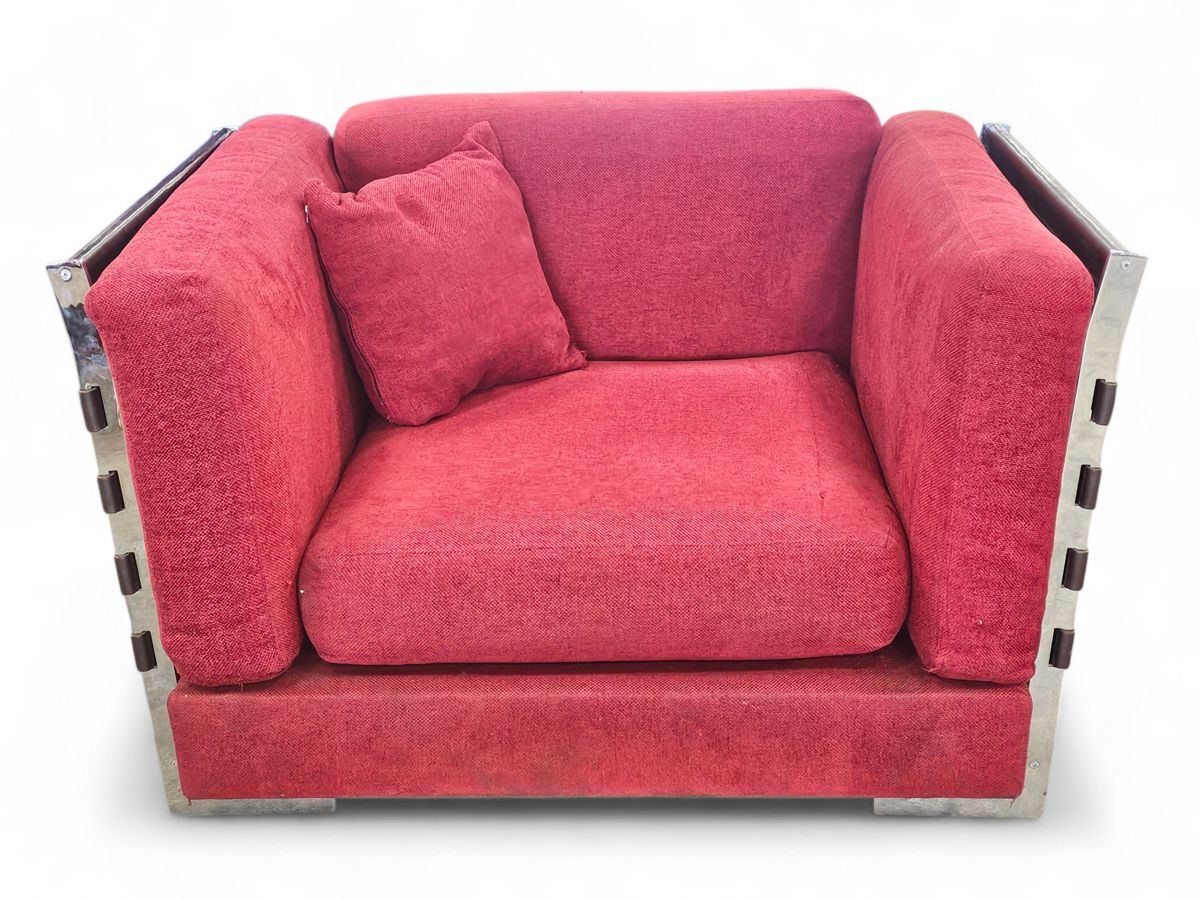Pair Cestone Leather and Metal Arm Chairs . Used Condition . 125cmx100x76cm