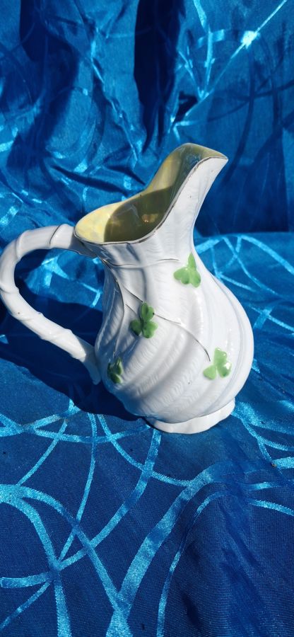 Vintage ceramic jug with a unique hand-painted clover design.