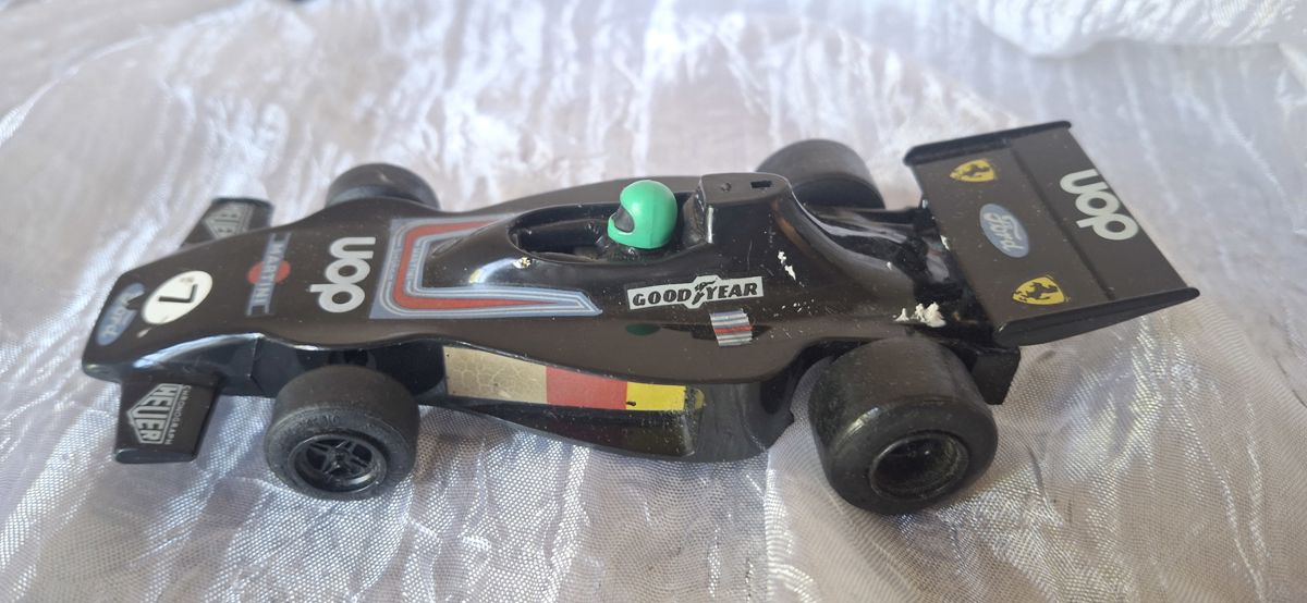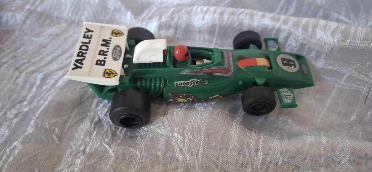 Vintage slot cars featuring Yardley B.R.M. and UOP models.