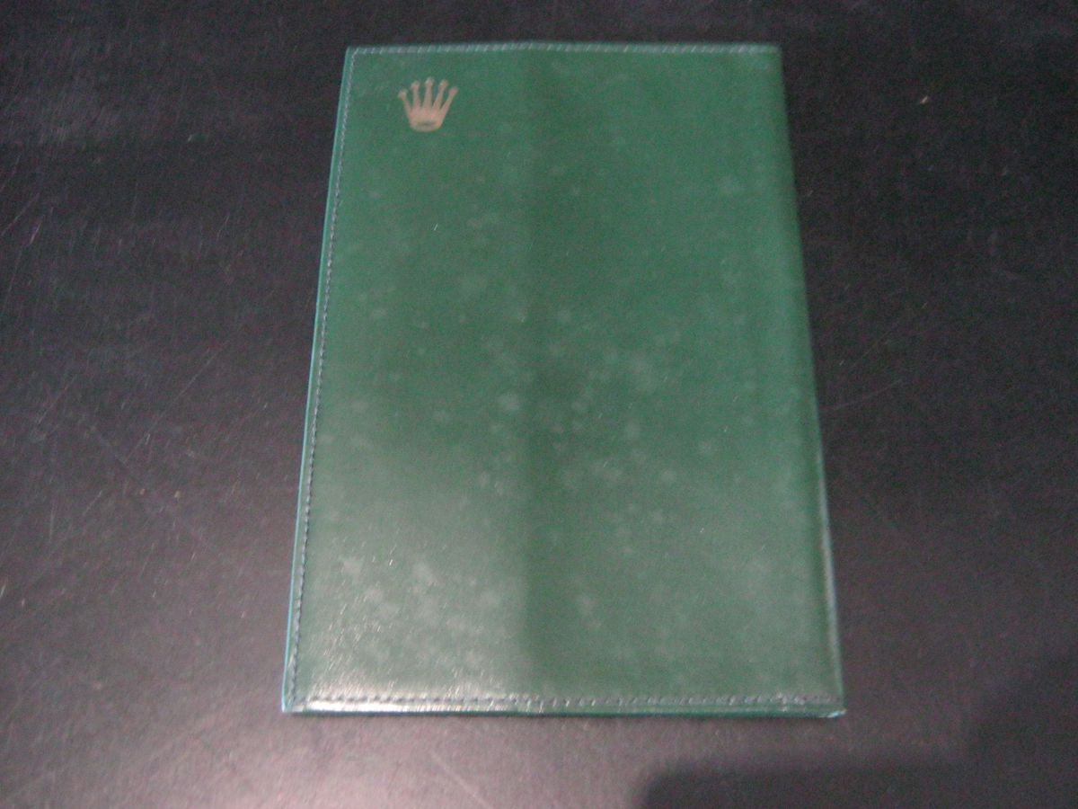 VINTAGE ROLEX GREEN LEATHER PASSPORT HOLDER, Some wear to fabric lining