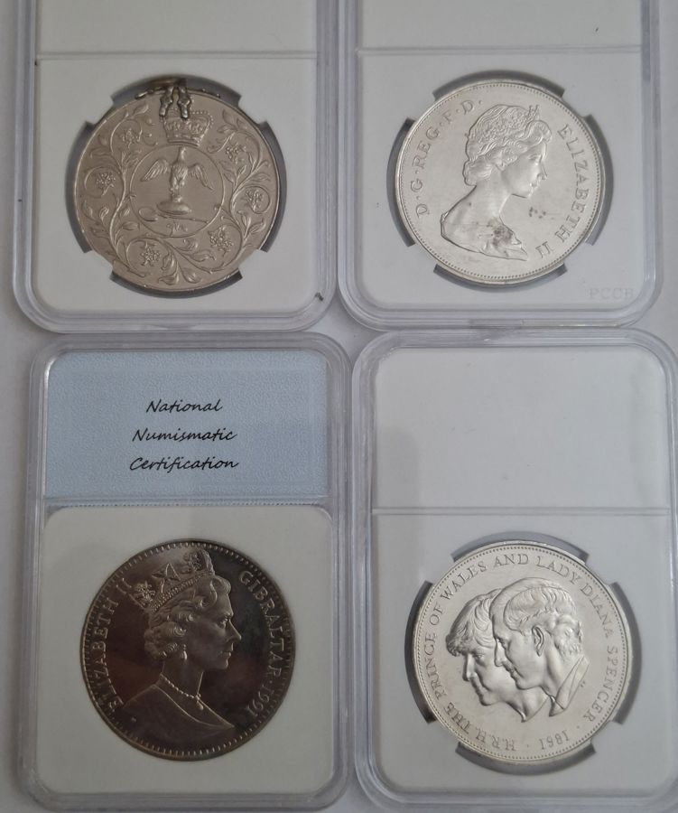 4x Great Britian Commemorative Crown Coin - 1977, 1980, 1987 and Graded 1991