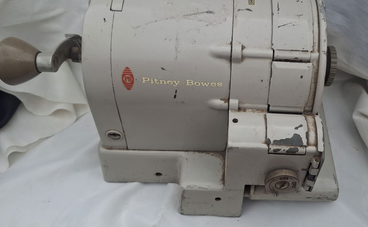 Pitney Bowes vintage postage meter, classic model used for stamping and mailing.