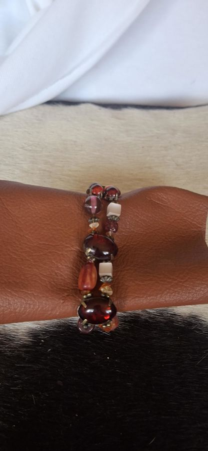 Material: A variety of semi-precious stones including agate and potentially garnet