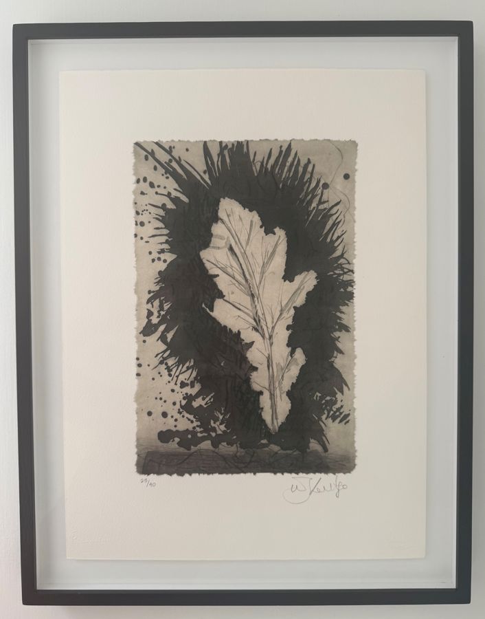 Coffee lift aquatint with drypoint on Phumani hand-made sisal paper