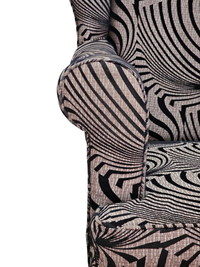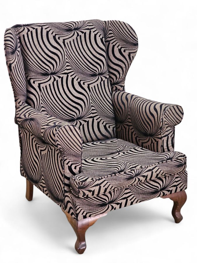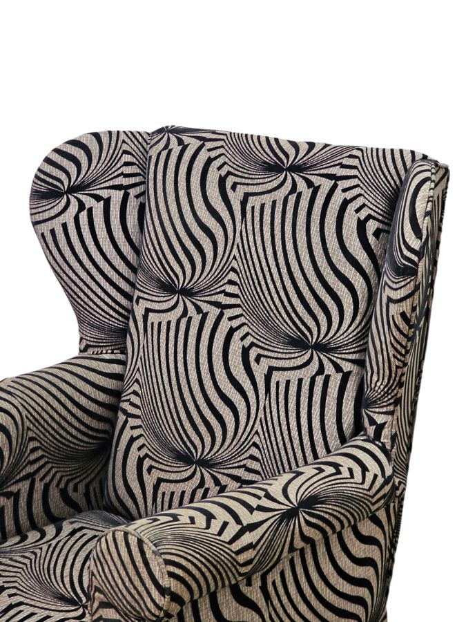 Wingback Armchair in a Contemporary Black and Beige Abstract Fabric 81cm(w) x 82cm(d) x 105cm(h)