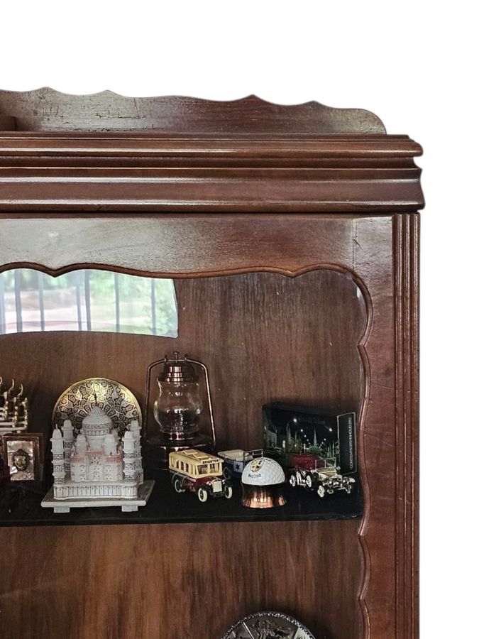 Vintage Imbuia (or similar hardwood) display cabinet in the Queen Anne Revival style 90cm(w) x 35cm(d) x 128cm(h).