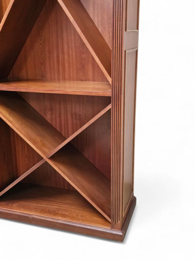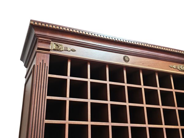 An exceptional piece of fine furniture by the highly regarded South African maker, Gordon Fraser, known for their superior craftsmanship and classic English Reproduction style furniture. This substantial, floor-to-ceiling wine storage cabinet or armoire offers extensive capacity for a serious wine collection.