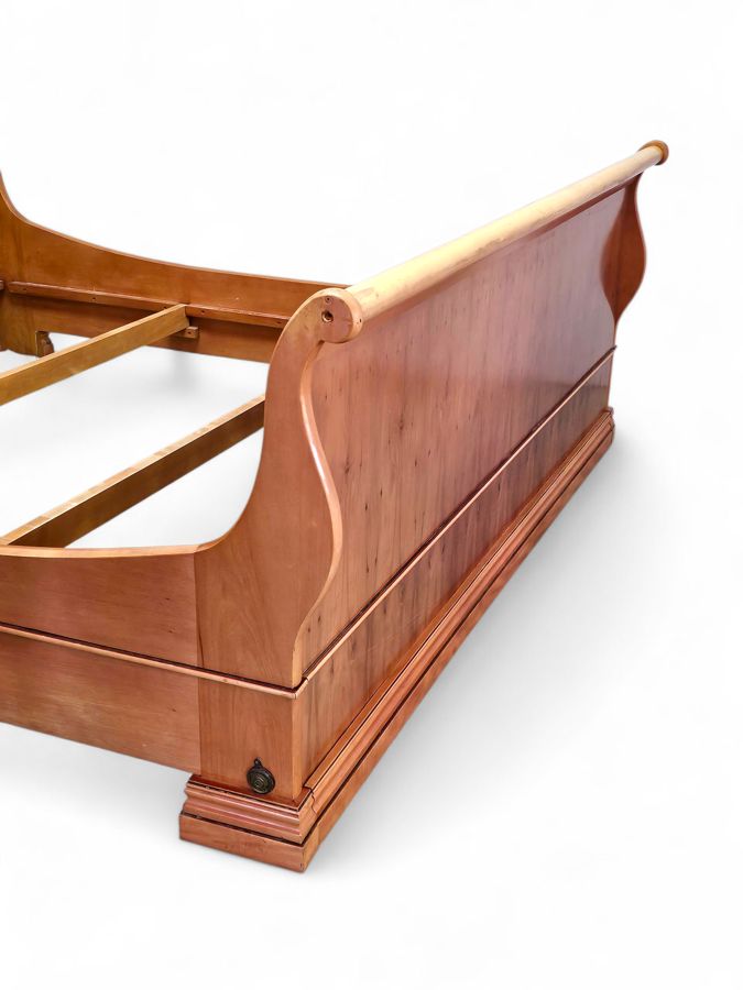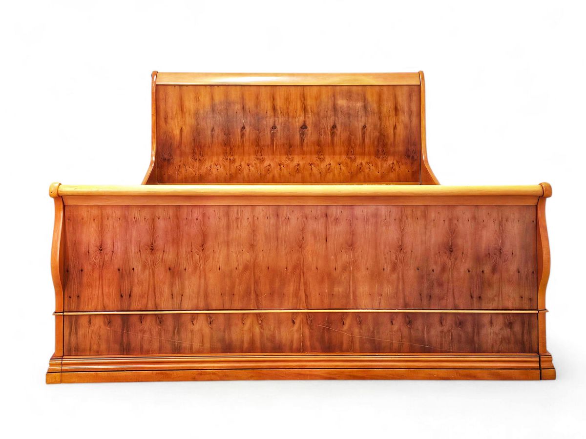 An Elegant 'Gordon Fraser' Yewwood King-Size Extra Length Sleigh Bed 2,19/2,02m(Bed)length x 1,94/1,80m(width) x 1,13m(h)