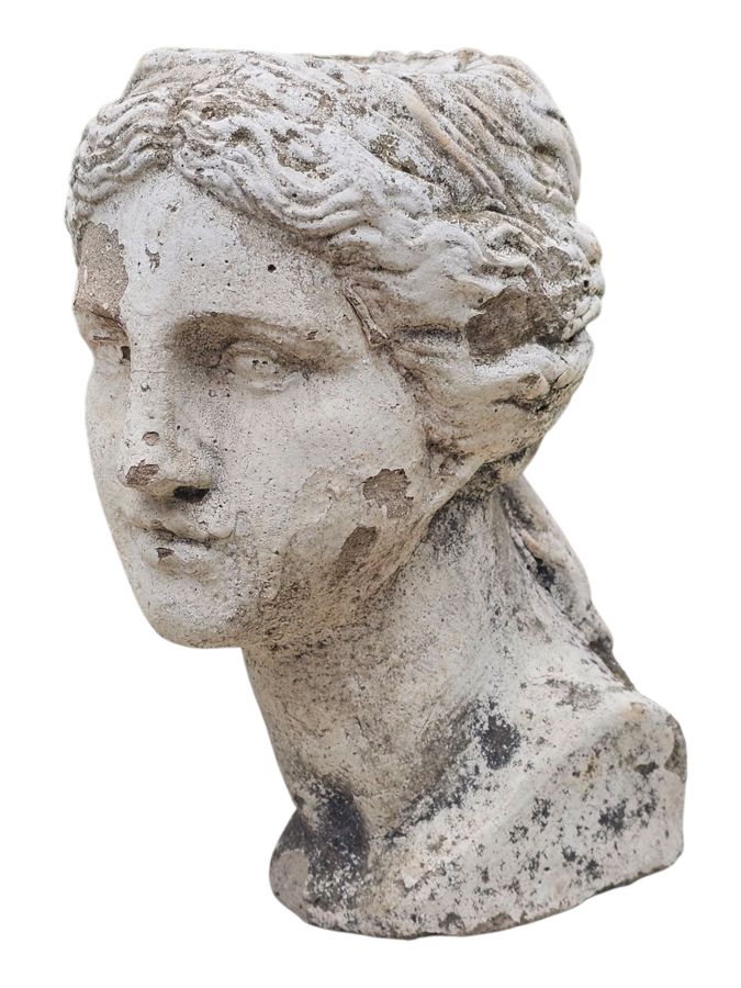 Weathered cast stone or concrete garden planter sculpted in the form of a classical female bust 22CM(H)