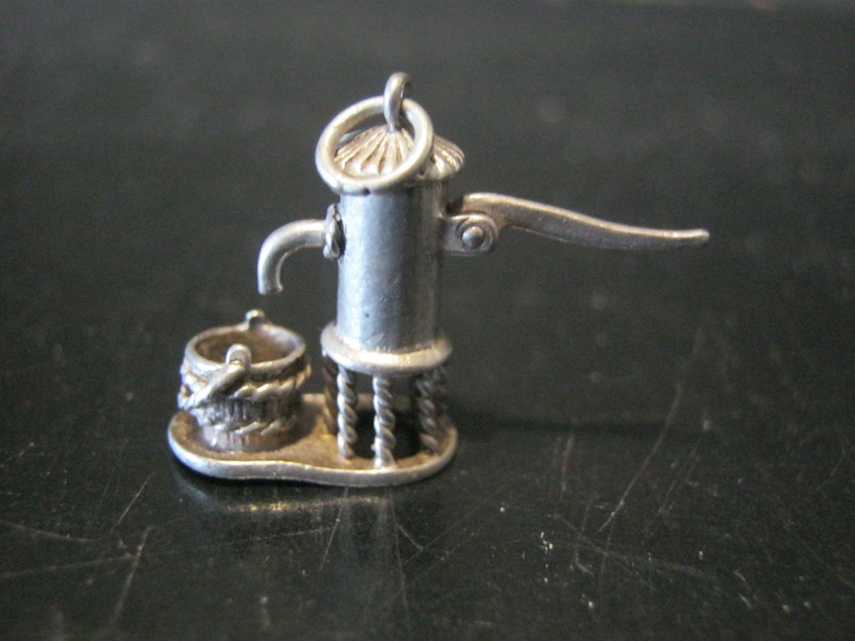 SILVER WATER PUMP CHARM, 17mm High, Pump Lever Moves, 3.9g