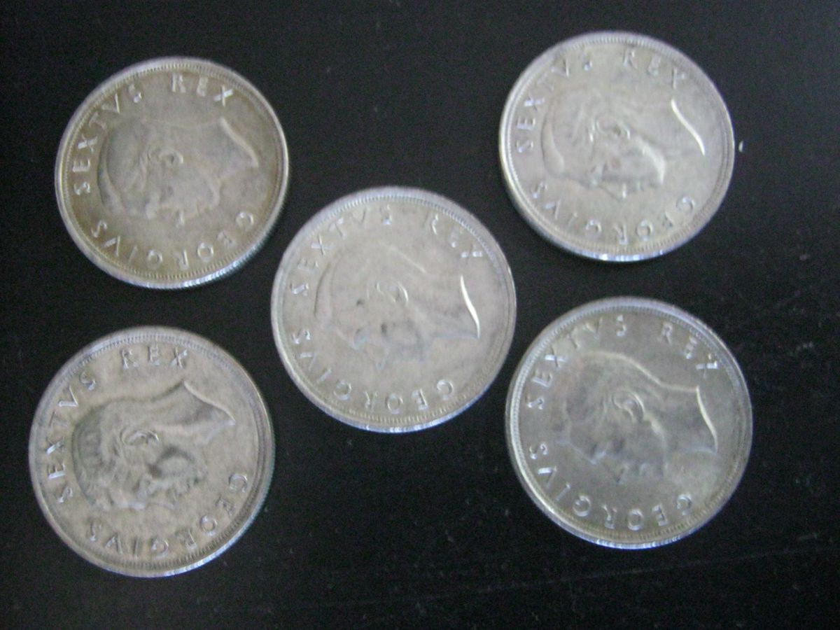 5 x 1952 5 SHILLING COINS, 300 Year Commemorative, 500 Silver, 28.28g each