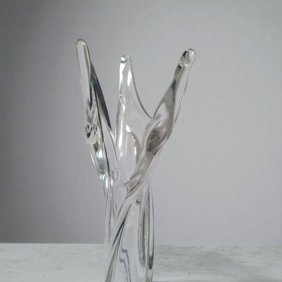 French Hand Blown Clear Ribbed Swirl Swung Art Glass Vase 47cm(h)