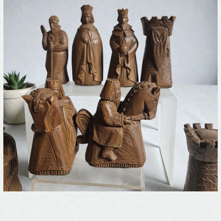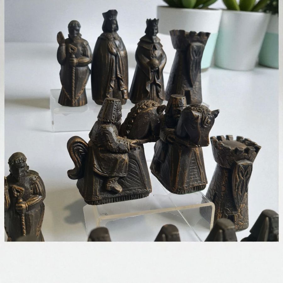 Rare Vintage Replica- Isle of Lewis Chess Pieces - full set 6-9cm in height