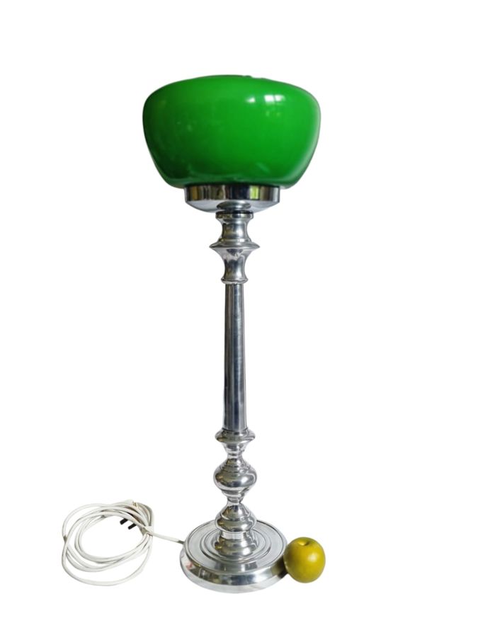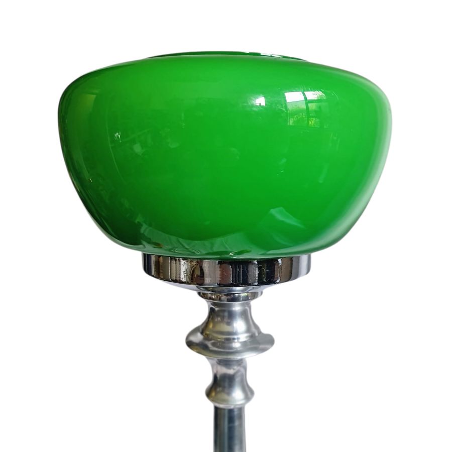 Retro Tall Chrome Table lamp with green glass shade