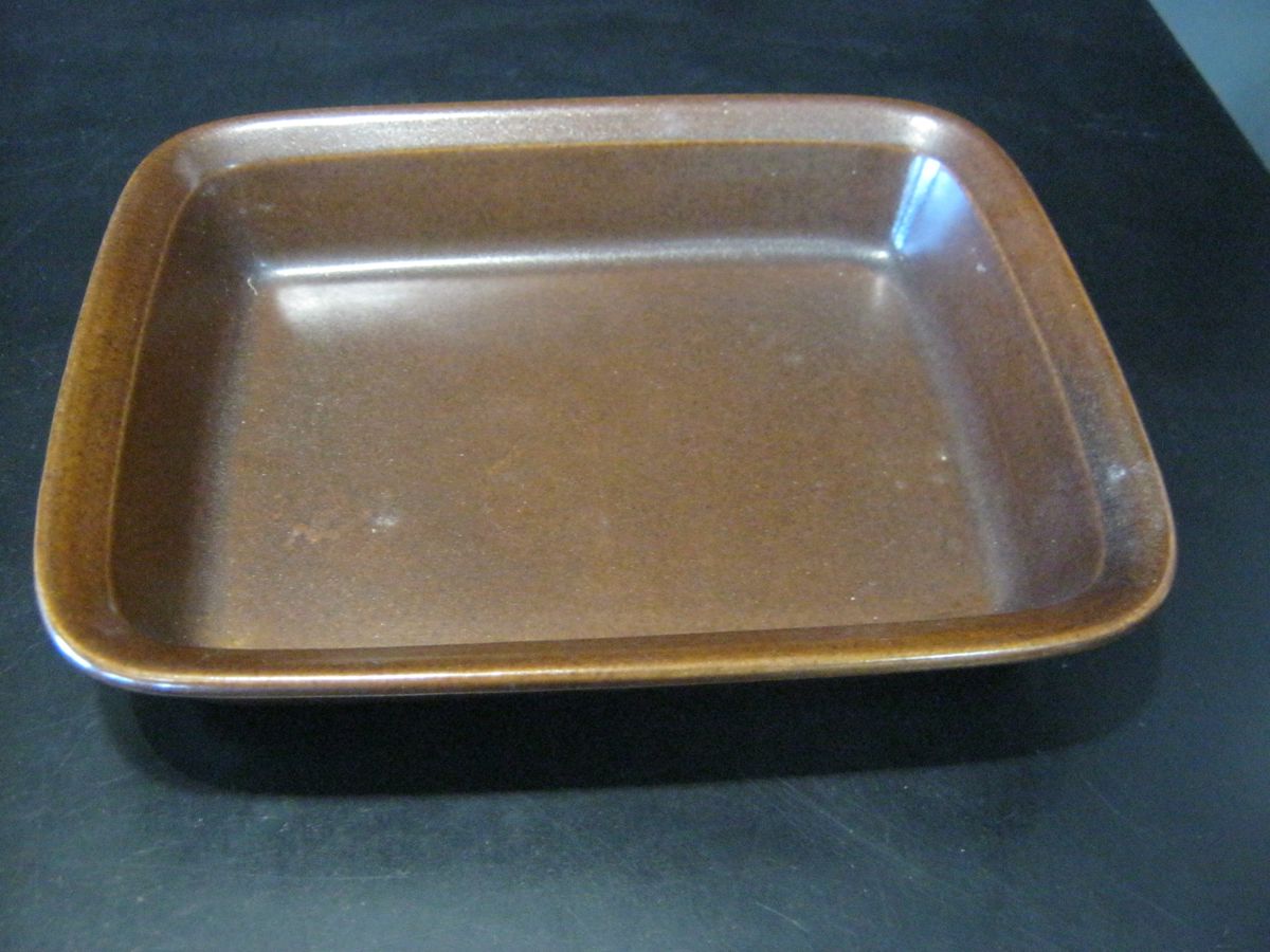 WEDGWOOD MID CENTURY BROWN POTTERY RECTANGULAR DISH, 27cm x 21cm