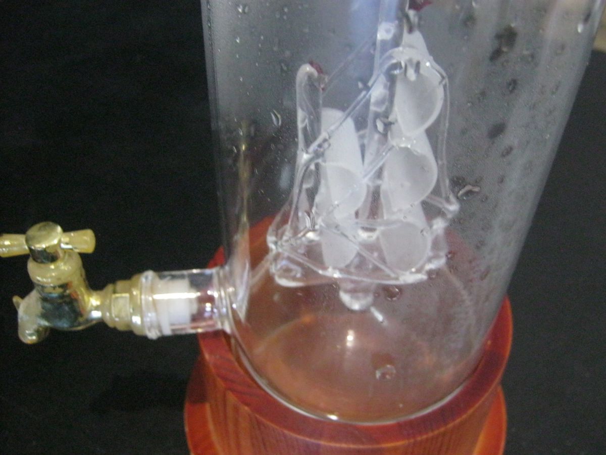 NOVELTY DECANTER WITH GLASS SHIP AT BASE, Tap for Dispensing, 31cm Tall incl Stopper