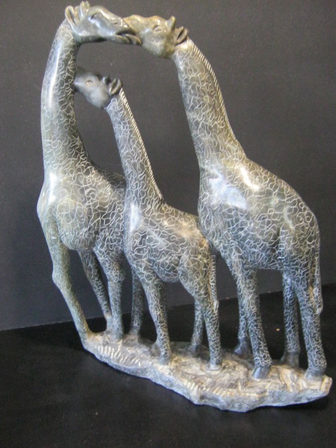 CARVED SANDSTONE GIRAFFE GROUP, 49cm High, 16kg