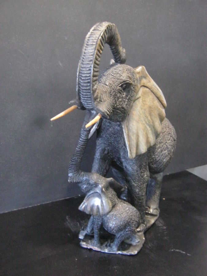 CARVED SANDSTONE ELEPHANT AND CALF GROUP, 44.5cm High, 16kg