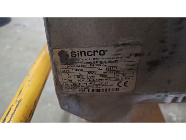 | Location: Bloemfontein Condition: See pictures for detail on the items.Petrol welder/generator. Sincro kva7. Physical viewing is the responsibility of the buyer. Vat Registered: Yes Buyers Commission: 10% Viewing Date: As per Appointment Invoices will not be cancelled after the auction if: 1. The buyer or his/her agent(s) did not view the asset(s) before or during the auction. 2. Assets are removed from the premises by the buyer or his/her agents. By removing the asset(s) the buyer confirms acceptance of the asset(s) in its current condition and thereby concludes the sale. Items are not tested unless otherwise specified. All items are sold “voetstoots” or “as is”. Contact: Philip 0610156516 |