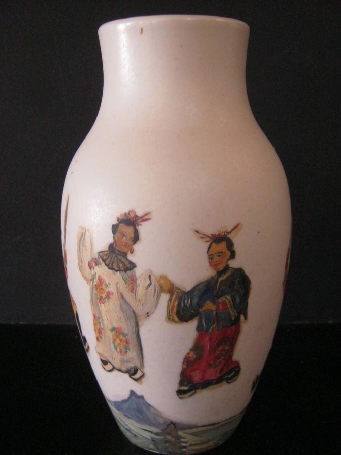 LOVATTS PORCELAIN VASE DEPICTING CHINESE BATTLE SCENES, 25cm Tall