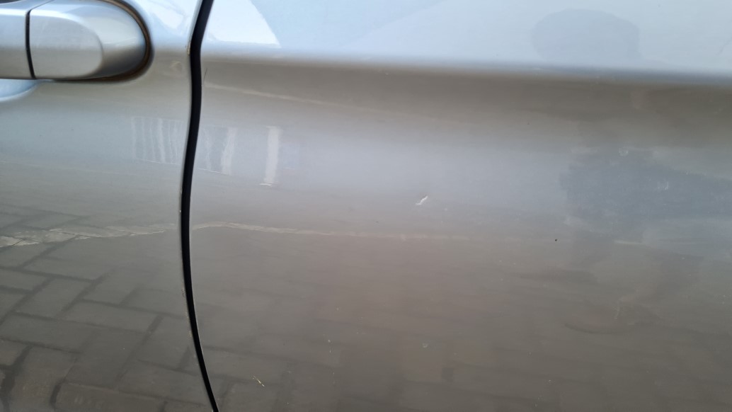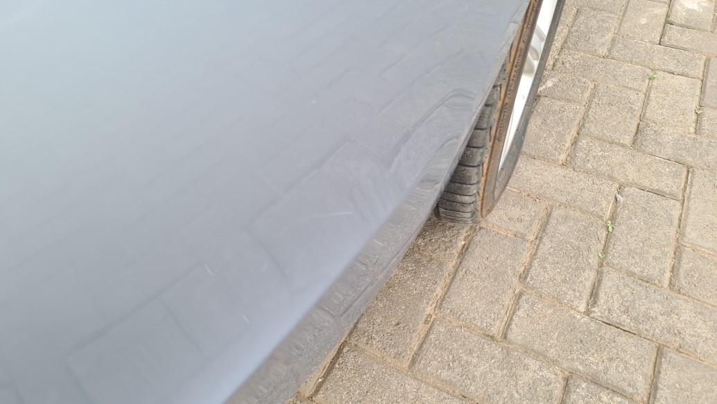 Slight dents, scratches and chip marks. Fuel cap dent. Rear window film scratched.