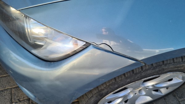 Front bumper and windscreen trim cracked, bumper caps removed.