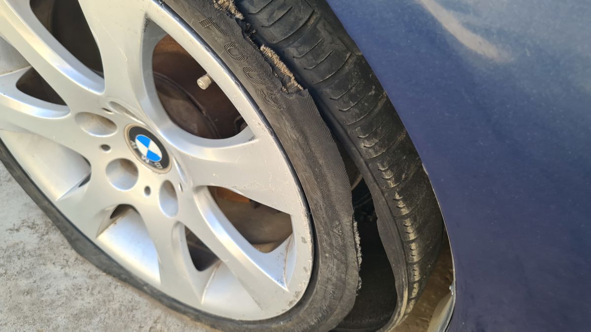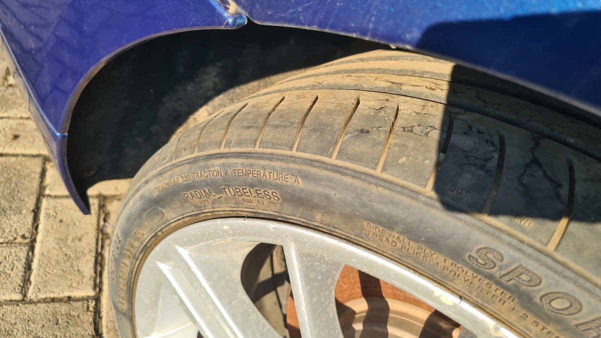 Different type of rims, tyres below standard.