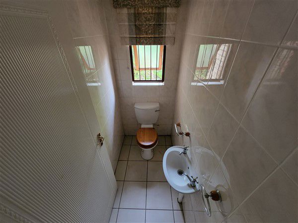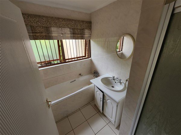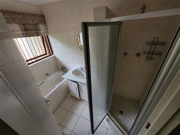 The main bedroom en-suite bathroom with bath, shower and toilet.
